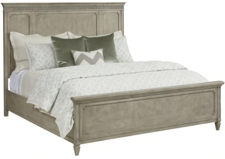 Panel bed has a top cap rail on both headboard and footboard. The dentil moulding and reeding on the headboard finish out the room. Finely appointed details and casual, balanced structure contribute to Savona's Old World European feel.Read More