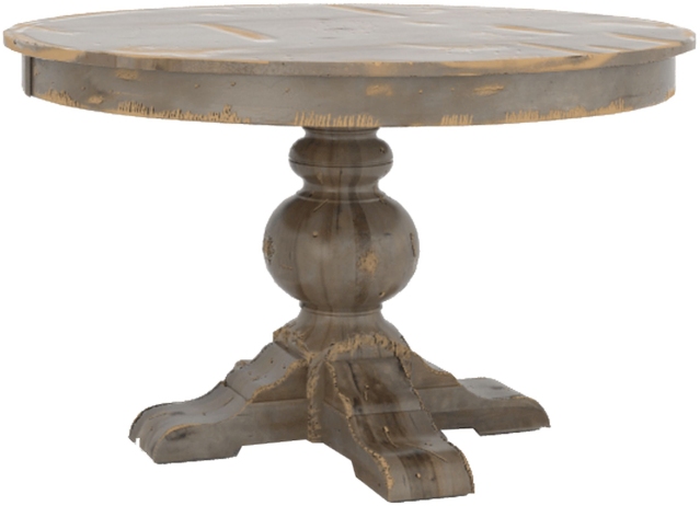 Canadel Champlain Table features round top, pedestal leg and curved ball design in a shadow washed finish.Read More