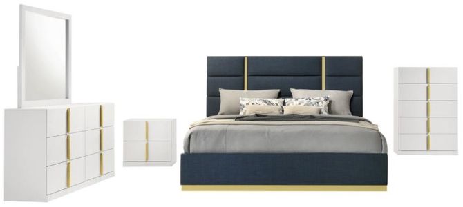 This contemporary bedroom set channels high-end Italian style through sleek geometry and luxe material finishes. Each piece is accented with polished gold details that bring sculptural contrast to clean, modern lines.Read More