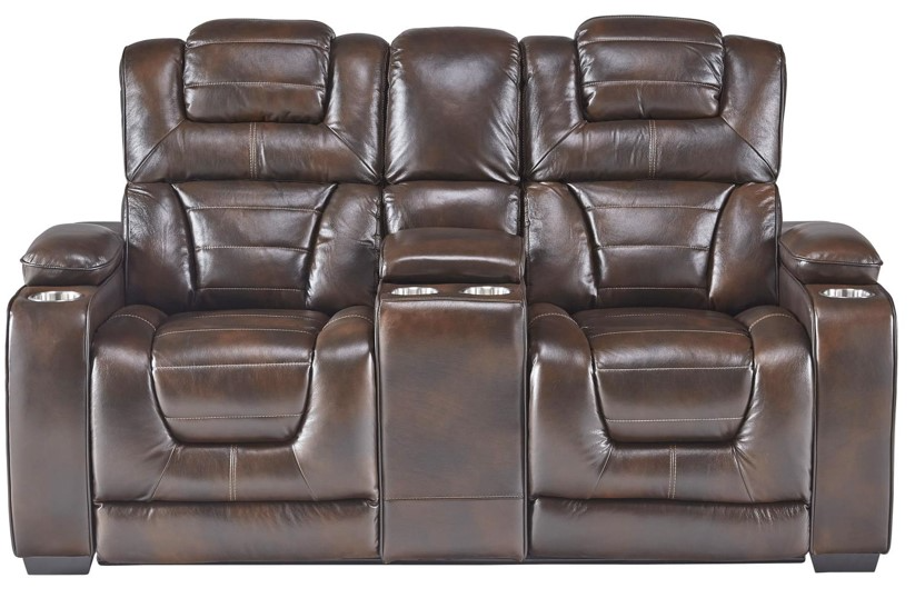 The Corinthian Furniture Luke Chocolate Power Reclining Loveseat with Power Headrest and Console offers luxurious comfort with power reclining and adjustable power headrests for personalized support. Upholstered in rich chocolate fabric, it includes a convenient console for storage and cup holders, making it the perfect addition to any living room for relaxation and functionality.Read More