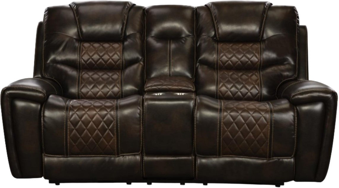 The Corinthian Furniture McGregor Brown/Tobacco Manual Reclining Loveseat with Console offers a perfect blend of comfort and functionality. Upholstered in a rich brown/tobacco fabric, it features manual reclining mechanisms and a convenient console for storing essentials, making it an ideal choice for relaxed seating and movie nights.Read More