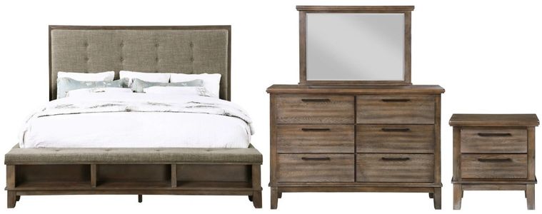Set includes bed, dresser, mirror, and nightstand